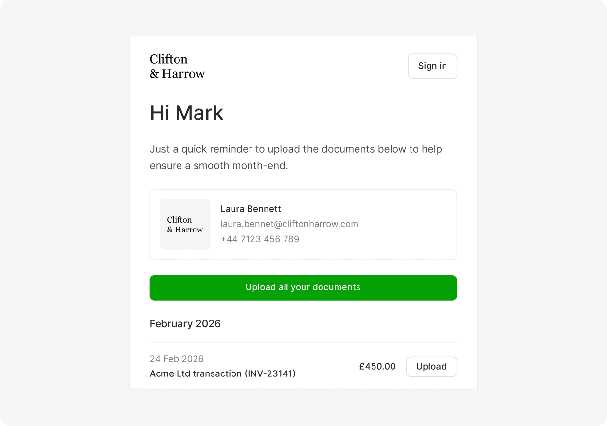 Getting documents from clients is the hardest part of month-end. So we fixed it.