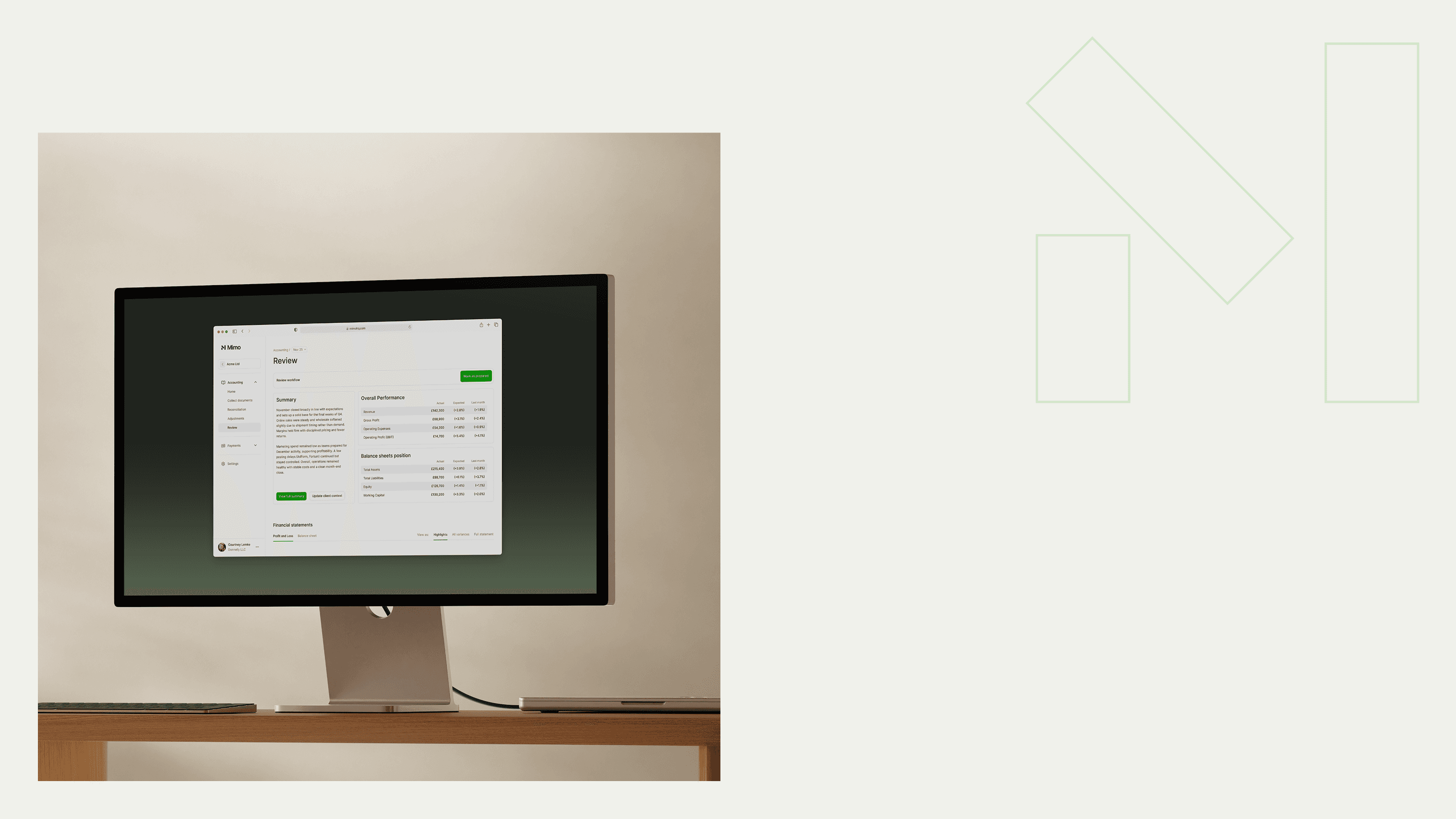 Mimo Associate is a full expression of this architecture operating in real firms. It runs month-end end-to-end - chasing documents, managing prepayment schedules, posting adjustments, coordinating exceptions for review - within a single system rather than across a chain of disconnected tools. It works throughout the month, not only at the close, shifting the nature of the work from last-minute pressure to ongoing, confident review.